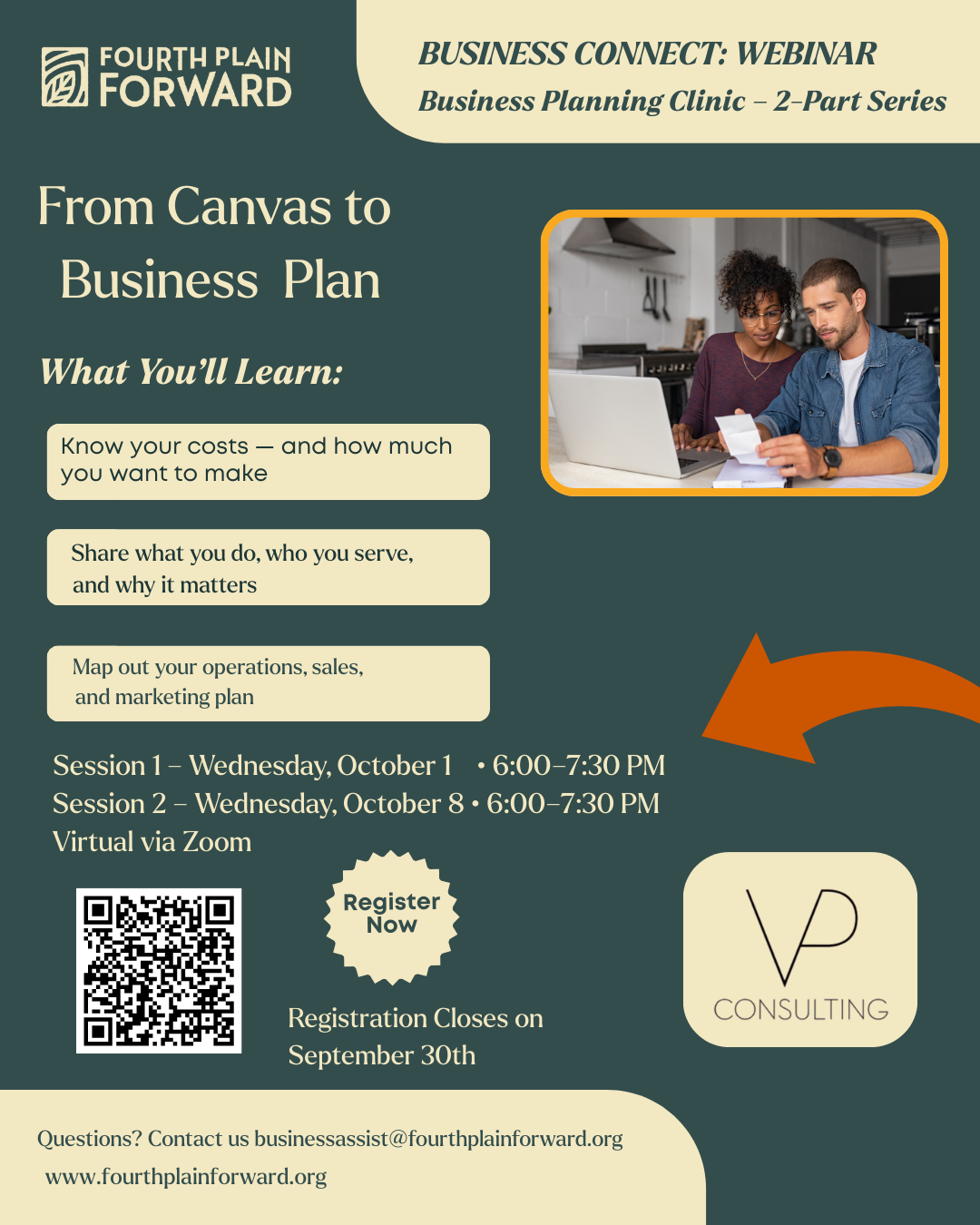 In this two-part workshop you’ll sketch out a simple 2–3 page business plan, discover your start-up costs and monthly expenses, and map out how you’ll reach customers, without getting lost in a long, formal document.